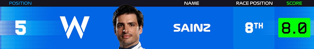 カルロス・サインツJr.は、予選ではアルボンを上回ったが、決勝ではその逆に。レース中盤にVSC前にピットインしたことで流れを失ったものの、ミッドフィールド後方から8位まで挽回したのは見事だった。