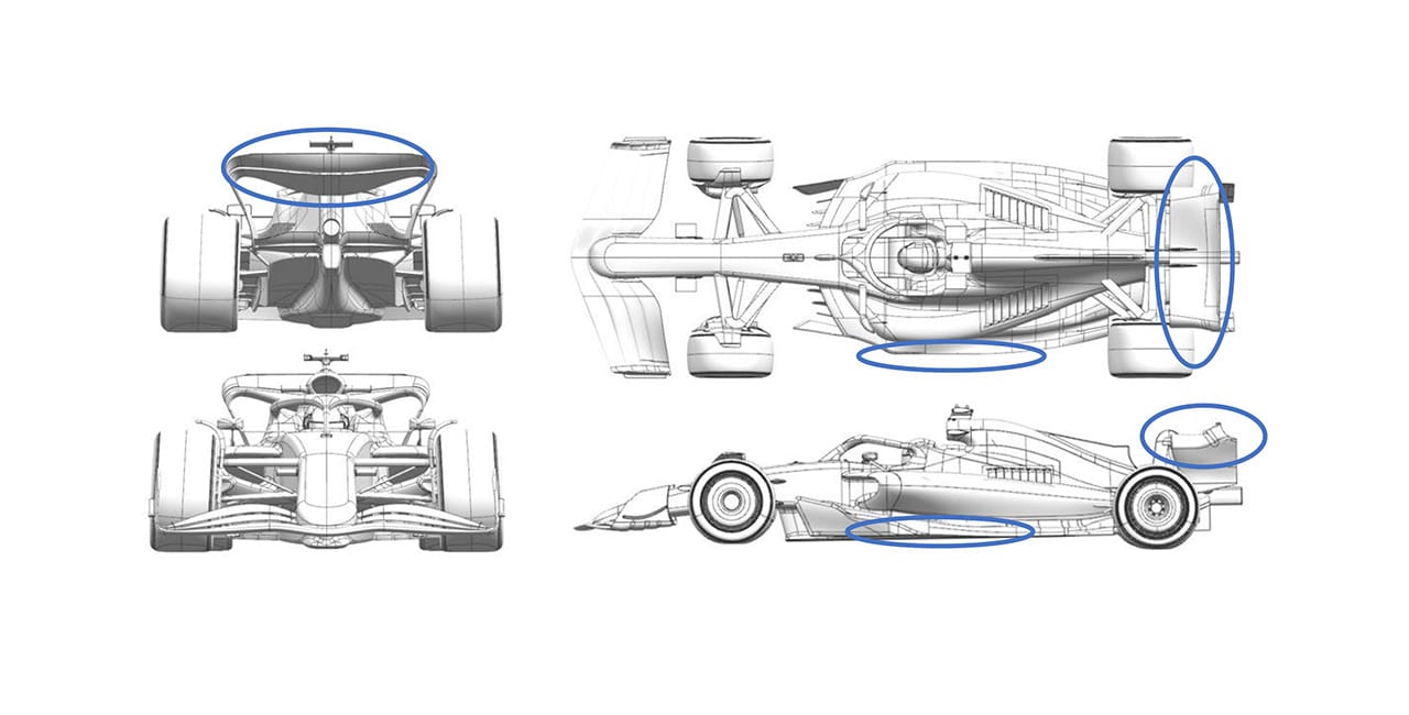 ■ フロアボディ:フェンスやエッジ、ディフューザーを含む広範な変更で、下部全体の流れを最適化。